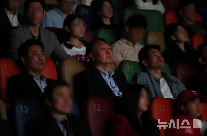 [서울=뉴시스] 황준선 기자 = 윤석열 전 대통령이 21일 오전 서울 중구 메가박스 동대문점에서 다큐멘터리 영화 '부정선거, 신의 작품인가'를 관람하고 있다. 왼쪽부터 이영돈 PD, 윤 전 대통령, 전직 한국사 강사 전한길 씨. 2025.05.21. [email protected]