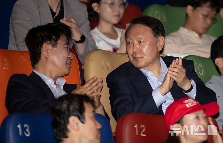 [서울=뉴시스] 황준선 기자 = 윤석열 전 대통령이 21일 오전 서울 중구 메가박스 동대문점에서 다큐멘터리 영화 '부정선거, 신의 작품인가' 관람을 마친 뒤 이영돈PD와 대화하고 있다. 2025.05.21. [email protected]