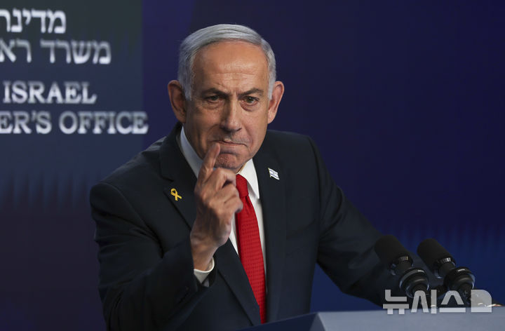 [예루살렘=AP/뉴시스] 베냐민 네타냐후 이스라엘 총리가 21일(현지 시간) 예루살렘에서 기자회견하고 있다. 네타냐후 총리는 가자지구 재점령을 목표로 최근 시작한 '기드온의 전차' 작전을 멈추지 않을 것이며 "이 작전이 끝나면 가자지구의 모든 지역이 이스라엘의 통제 아래 있을 것"이라고 주장했다. 2025.05.22.