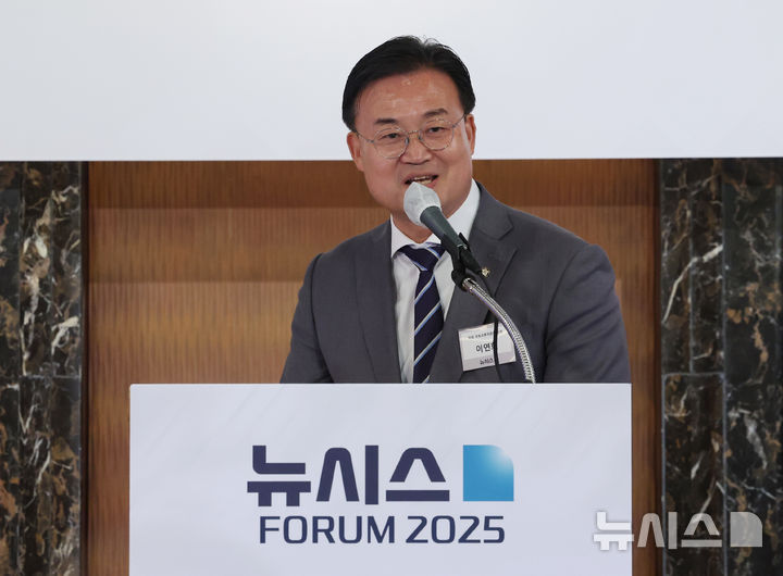[서울=뉴시스] 조수정 기자 = 국회 국토교통위원회 위원인 이연희 더불어민주당 의원이 22일 오전 서울 중구 롯데호텔서울에서 열린 제7회 뉴시스 건설부동산포럼 '초양극화로 접어든 부동산 시장…해법은?'에서 축사하고 있다. 2025.05.22. [email protected]