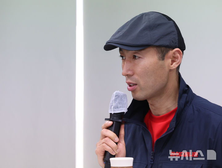 [서울=뉴시스] 조수정 기자 = 구교현 라이더유니온 위원장이 22일 오전 서울 종로구 참여연대에서 열린 21대 대선 캠프 초청 플랫폼이용자 집담회에서 발언하고 있다. 2025.05.22. [email protected]
