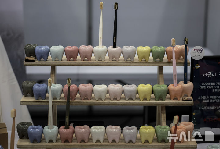 [고양=뉴시스] 정병혁 기자 = 22일 경기 고양시 킨텍스에서 열린 2025 여성발명왕 엑스포에 어금니 칫솔꼿이가 전시되어 있다. 2025.05.22. [email protected]