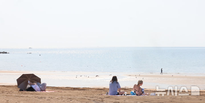 [인천=뉴시스] 전진환 기자 = 초여름 날씨를 보인 22일 오후 인천 중구 을왕리해수욕장을 찾은 관광객들이 일광욕을 즐기고 있다.