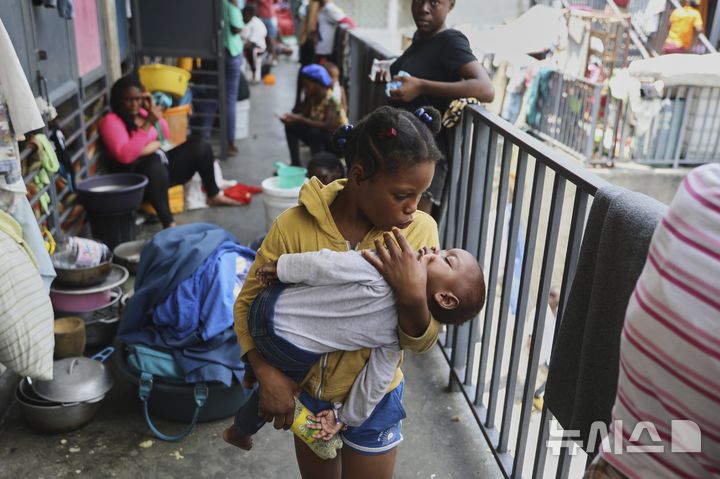 [포르토프랭스=AP/뉴시스] 22일(현지 시간) 아이티 포르토프랭스의 한 대피소에서 한 소녀가 어린아이를 달래며 돌보고 있다. 이 피난처는 갱단 폭력으로 집을 잃은 사람들을 위해 마련된 곳이다. 2025.05.25.