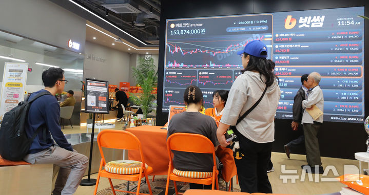 [서울=뉴시스] 김혜진 기자 = 비트코인이 연일 상승하며 역대 최고가를 기록한 23일 서울 강남구 빗썸 라운지 전광판에 비트코인 시세가 표시되고 있다. 2025.05.23. [email protected]