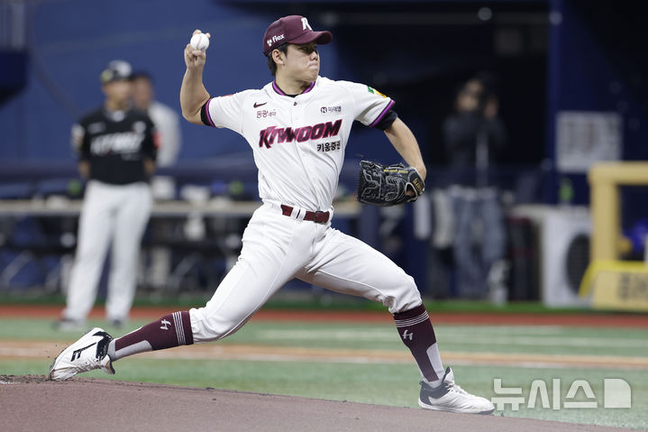 [서울=뉴시스] 최동준 기자 = 23일 서울 구로구 고척스카이돔에서 열린 2025 KBO리그 kt 위즈와 키움 히어로즈의 경기, 키움 선발 김윤하가 역투하고 있다. 2025.05.23. [email protected]