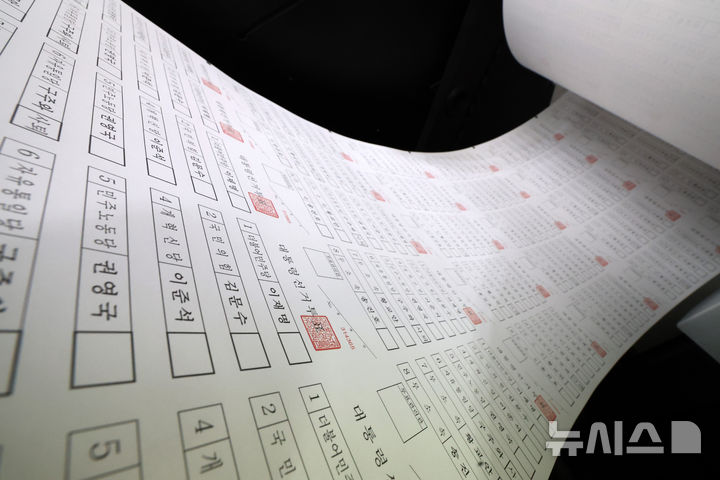 [서울=뉴시스] 김종택 기자 = 제21대 대통령선거를 9일 앞둔 25일 경기 안양의 한 인쇄소에서 대선 투표용지가 인쇄되고 있다. (공동취재) 2025.05.25 [email protected]