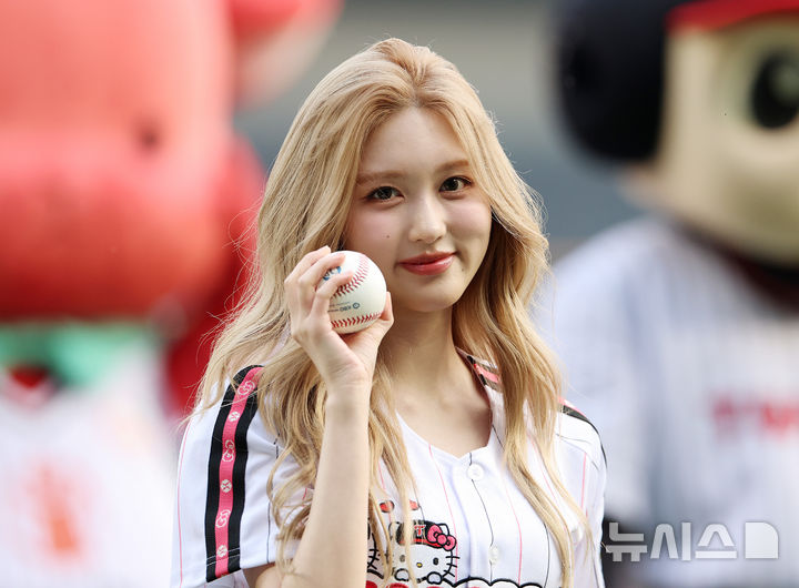 [서울=뉴시스] 이영환 기자 = 27일 오후 서울 송파구 잠실야구장에서 열린 2025 프로야구 한화 이글스와 LG 트윈스의 경기, 그룹 아이브(IVE) 가을이 시구를 마친 후 이동하고 있다. 2025.05.27. [email protected]
