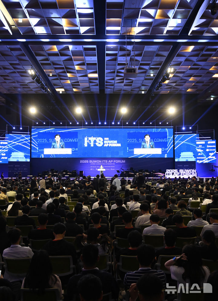 [수원=뉴시스] 김종택 기자 = 28일 경기 수원시 영통구 수원컨벤션센터에서 '2025 수원 ITS 아태총회 개막식'이 진행되고 있다.