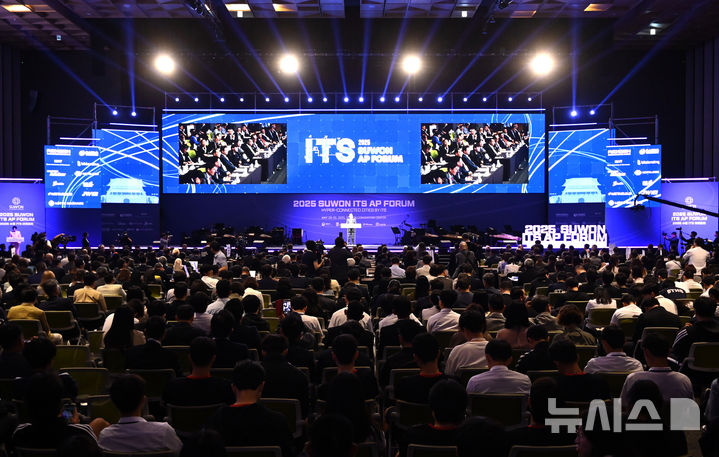 [수원=뉴시스] 김종택 기자 = 28일 경기 수원시 영통구 수원컨벤션센터에서 '2025 수원 ITS 아태총회 개막식'이 진행되고 있다.