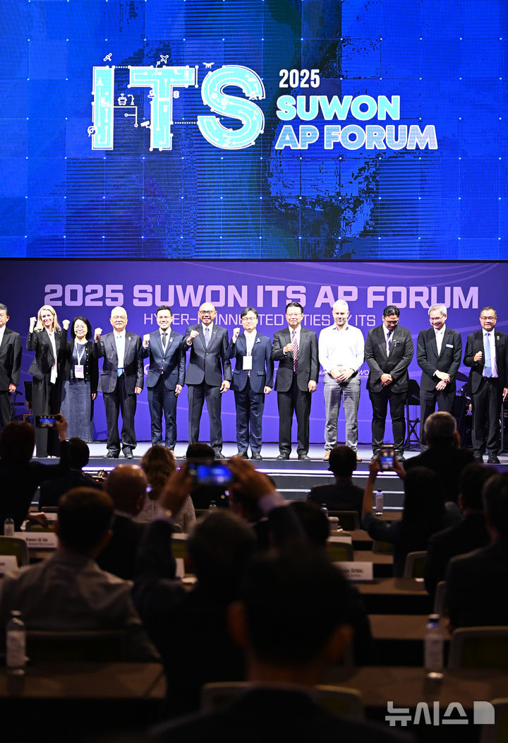 [수원=뉴시스] 김종택 기자 = 28일 경기 수원시 영통구 수원컨벤션센터에서 '2025 수원 ITS 아태총회 개막식'이 진행되고 있다.
