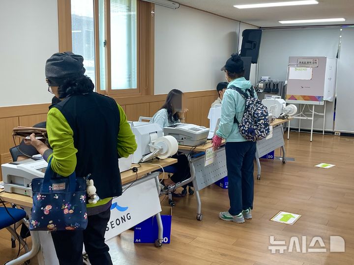 [대구=뉴시스] 정재익 기자 = 제21대 대통령선거 사전투표 첫날인 29일 오전 대구 수성4가동 행정복지센터에 마련된 사전투표소에서 유권자들이 투표 안내를 받고 있다. 2025.05.29. jjikk@newsiscom