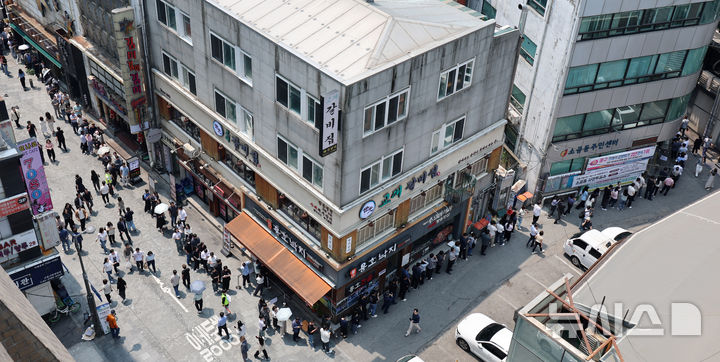 [서울=뉴시스] 이영환 기자 = 시민들이 제21대 대통령 선거 사전투표 첫날인 29일 오후 서울 중구 소공동주민센터에 마련된 사전투표소에서 투표를 하기위해 줄지어 서 있다. 2025.05.29. [email protected]