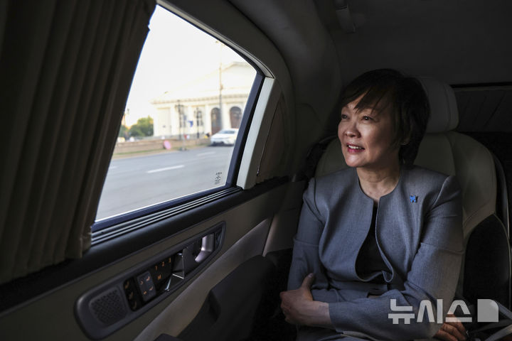 [모스크바=AP/뉴시스] 아베 신조 전 일본 총리의 부인 아키에 여사가 29일(현지 시간) 러시아 모스크바 크렘린궁에서 블라디미르 푸틴 러시아 대통령을 만난 후 푸틴이 제공한 전용 리무진 ‘아우르스’를 타고 돌아가고 있다. 2025.05.30.