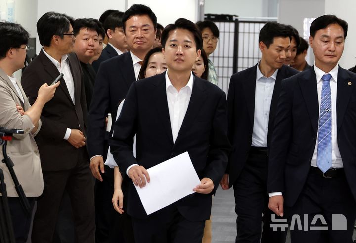 [서울=뉴시스] 조성봉 기자 = 이준석 개혁신당 대선후보가 30일 오후 서울 여의도 국회 소통관에서 진보정당들이 자신을 상대로 발의한 징계안에 대해 입장 발표를 하기 위해 들어서고 있다. 2025.05.30. [email protected]