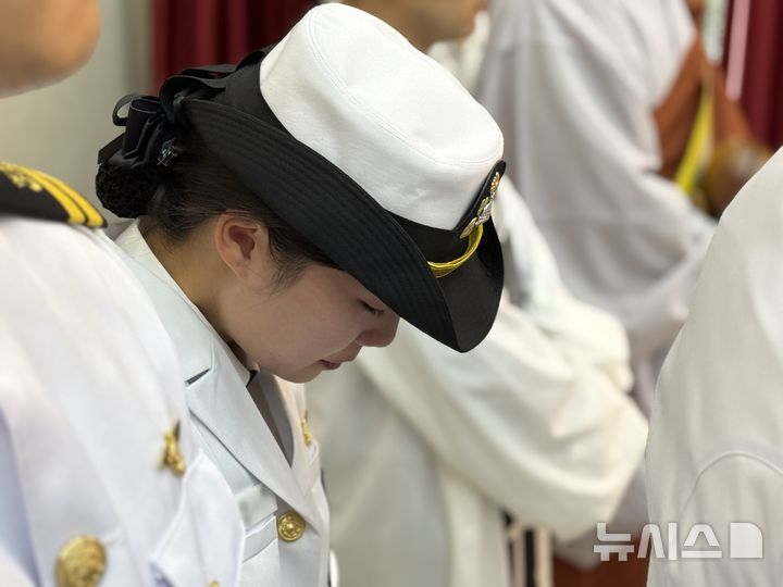 [포항=뉴시스] 안병철 기자 = 1일 해군 해군항공사령부 강당에서 해상초계기(P-3CK) 순직 승무원들의 영결식이 엄수된 가운데 한 장교가 눈물을 흘리고 있다. 2025.06.01. [email protected]
