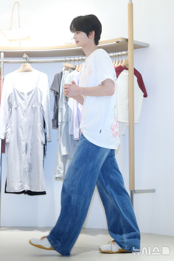 [서울=뉴시스] 김혜진 기자 = 그룹 투어스 신유가 2일 오전 서울 중구 와키윌리 서울 플래그십 스토어에서 열린 오픈 기념 포토행사에서 포즈를 취하고 있다. 2025.06.02. [email protected]