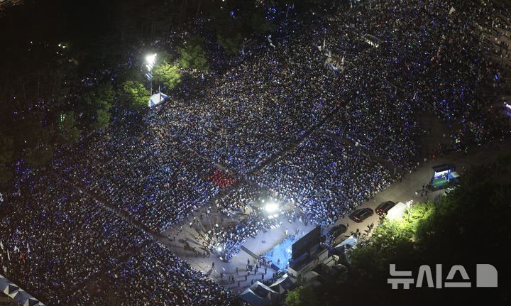 [서울=뉴시스] 조성봉 기자 = 2일 오후 서울 영등포구 여의도공원 문화의마당에서 열린 이재명 더불어민주당 대선후보의 집중유세에 시민들이 북적이고 있다.2025.06.02. [email protected]