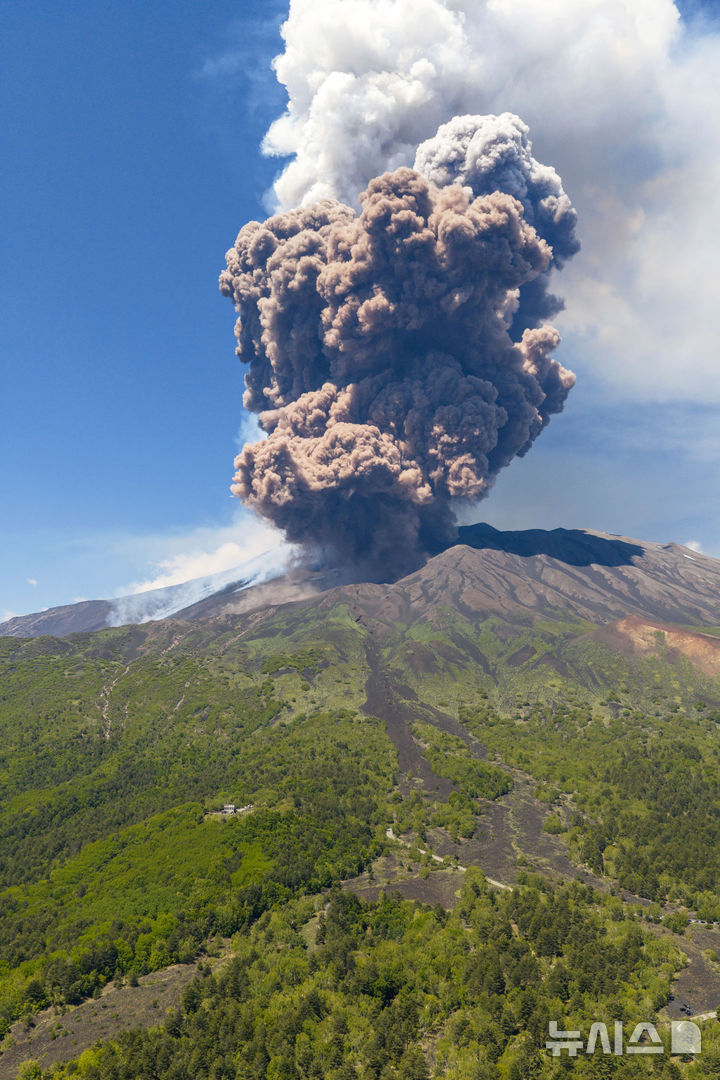 [시칠리아=AP/뉴시스] 2일(현지 시간) 이탈리아 시칠리아섬 에트나 화산에서 화산재와 연기가 피어오르고 있다. 이탈리아 지구물리학·화산학연구소(INGV)는 유럽에서 가장 활발한 화산인 에트나 화산의 남동부 분화구 일부에서 용암류가 분출되면서 화산재가 분출됐다고 밝혔다. 2025.06.03.