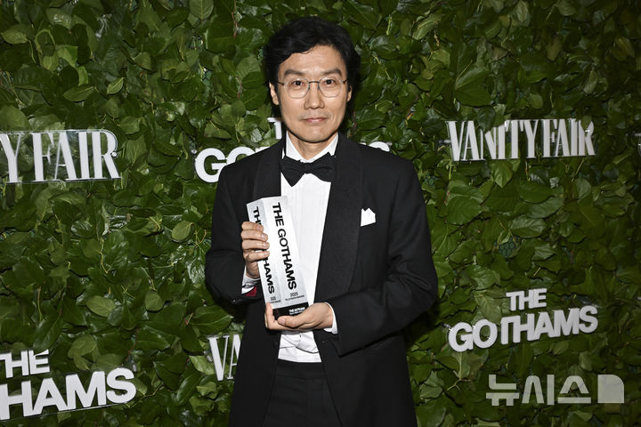 [뉴욕=AP/뉴시스] 넷플릭스 '오징어 게임'의 황동혁 감독이 2일(현지 시간) 미국 뉴욕 월스트리트 치프리아니에서 열린 '2025 고담 텔레비전 어워즈'에서 공로상(Creator Tribute)을 받은 후 포즈를 취하고 있다. 2025.06.03.