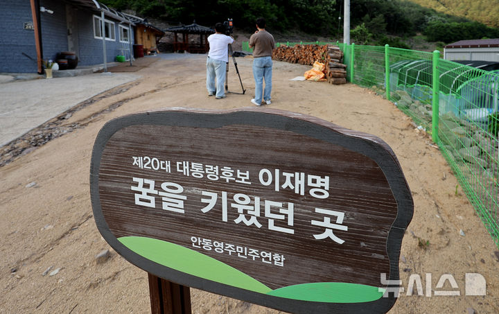 [안동=뉴시스] 이무열 기자 = 3일 오후 이재명 더불어민주당 대선 후보가 국민학교까지 살았던 경북 안동시 예안면 도촌리 평지마을에 이 후보의 꿈을 키웠던 팻말이 세워져 있다. 2025.06.03. [email protected]