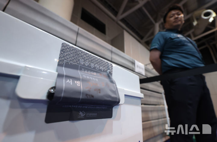 봉인지 상태 훼손 의혹으로 접근 차단된 투표함