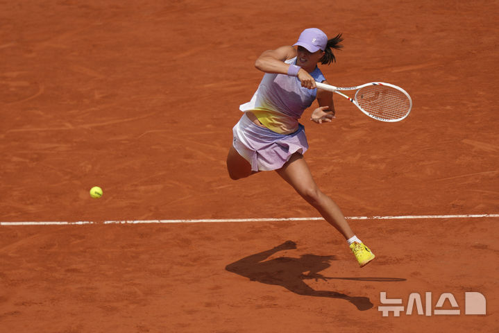 [파리=AP/뉴시스] 이가 시비옹테크(5위·폴란드)가 3일(현지 시간) 프랑스 파리 롤랑가로스 스타디움에서 열린 프랑스오픈 여자 단식 8강전에서 엘리나 스비톨리나(14위·우크라이나)와 경기하고 있다. 시비옹테크가 2-0(6-1 7-5)으로 이기고 준결승에 올라 아리나 사발렌카(1위·벨라루스)와 결승 진출을 다툰다. 2025.06.04.