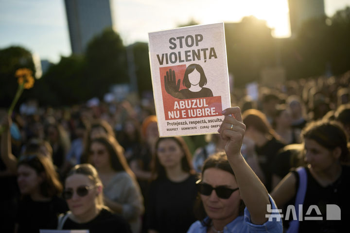 [부쿠레슈티=AP/뉴시스] 3일(현지 시간) 루마니아 부쿠레슈티 정부 청사 앞에서 수천 명의 여성 인권 운동가와 시민이 지난달 31일 발생한 임신부 피살 사건에 항의하며 시위하고 있다. 올해 23세의 피해 여성은 대낮에 주택가를 산책하던 중 49세의 옛 연인에게 총 4발을 맞고 숨졌고, 경찰의 추격을 받던 가해 남성도 스스로 목숨을 끊었다. 시위대는 정부가 여성을 겨냥한 폭력과 공격을 막는 실질적인 조치를 취할 것을 촉구했다. 2025.06.04.