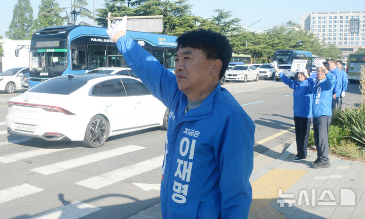 [전주=뉴시스] 김얼 기자 = 제21대 대통령선거 개표가 마무리된 4일 전북 전주시 종합경기장 사거리에서 더불어민주당 전북특별자치도당 관계자들이 이재명 대통령 당선에 대한 감사 인사를 전하고 있다. 2025.06.04. [email protected]