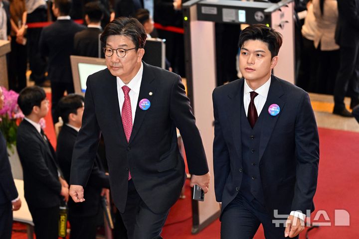 이재명 대통령 취임선서 참석하는 김용태-권성동