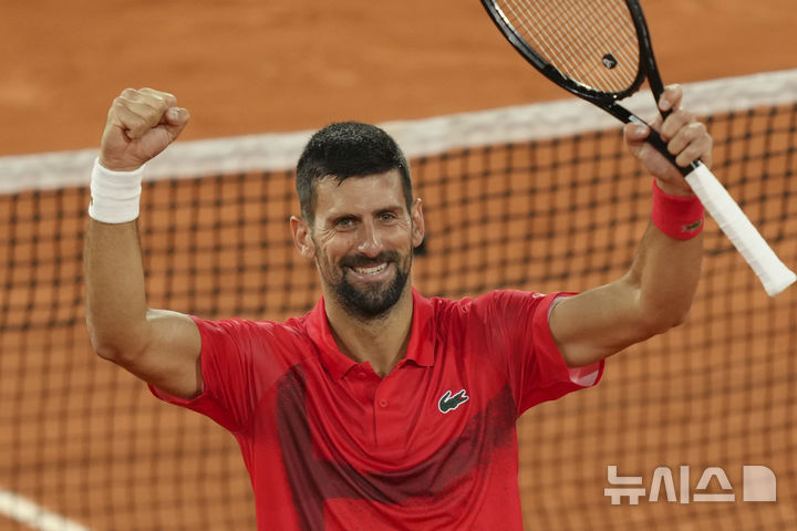[파리=AP/뉴시스] 노바크 조코비치(6위·세르비아)가 4일(현지 시간) 프랑스 파리 롤랑가로스에서 열린 프랑스오픈 남자 단식 8강전에서 알렉산더 츠베레프(3위·독일)를 물리친 후 세리머니하고 있다. 메이저 단식 25회 우승에 도전하는 조코비치가 3-1(4-6 6-3 6-2 6-4)로 승리하고 4강에 올라 얀니크 신네르(1위·이탈리아)와 결승 진출을 다툰다. 2025.06.05.
