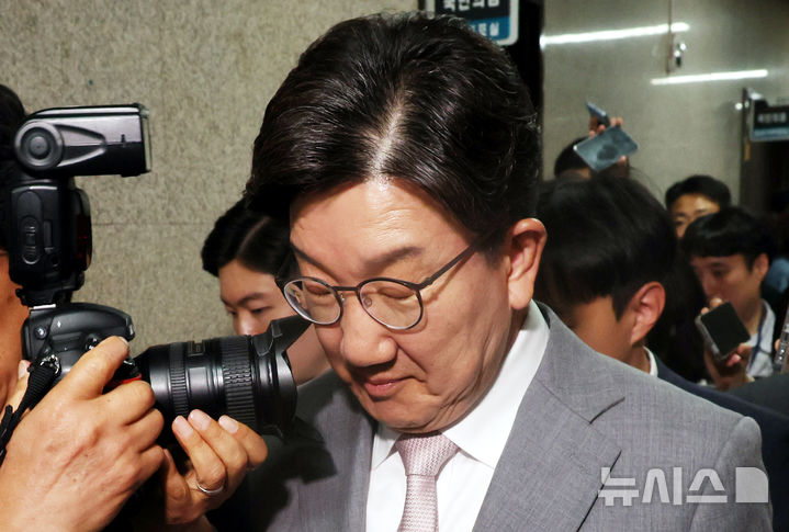 [서울=뉴시스] 조성봉 기자 = 권성동 국민의힘 원내대표가 5일 오전 서울 여의도 국회에서 이동중 취재진의 카메라에 부딪혀 괴로워하고 있다. 2025.06.05. [email protected]