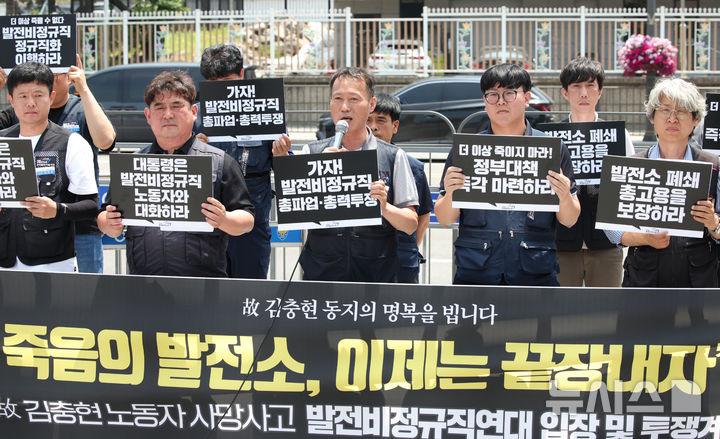 발전비정규직연대는 기자회견에서 정규직화 및 총고용 보장 대책을 요구하며 올 여름 전력피크 시기 조직적 공동파업을 예고했다. 2025.06.09. [email protected]