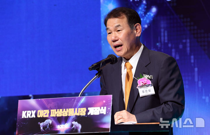 [부산=뉴시스] 하경민 기자 = 한국거래소(KRX) 야간 파생상품시장 개장식이 열린 9일 부산 롯데호텔에서 정은보 한국거래소 이사장이 인사말을 하고 있다.
