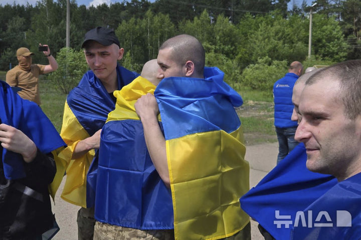 [체르느히우=AP/뉴시스] 9일(현지 시간) 우크라이나 체르느히우에서 러시아와의 포로 교환으로 석방된 우크라이나 군인들이 서로 포옹하고 있다. 러시아와 우크라이나가 25세 미만과 중상자 포로를 교환했다. 2025.06.10.