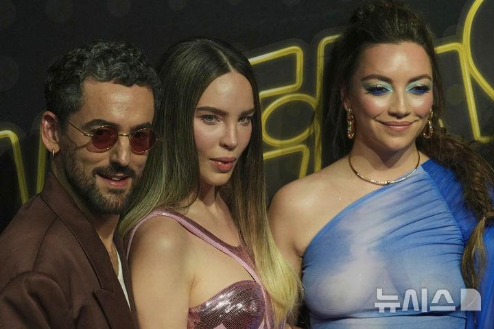 [멕시코시티=AP/뉴시스] 10일(현지 시간) 멕시코 멕시코시티에서 열린 드라마 ‘멘티라스, 라 세리에'(Mentiras, la serie) 사전 공개 행사에서 배우 루이스 헤라르도 멘데스(왼쪽부터), 벨린다, 레히나 블란돈이 포토 타임을 갖고 있다. 이 드라마는 13일 아마존 프라임을 통해 공개된다. 2025.06.11.