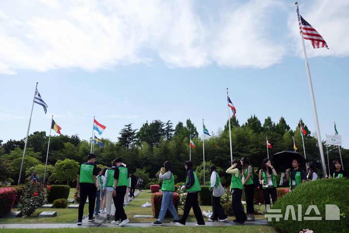 [부산=뉴시스] 하경민 기자 = 유엔참전국 후손 교류캠프 참가자들이 11일 부산 남구 유엔기념공원 전몰장병묘역을 참배하고 있다.