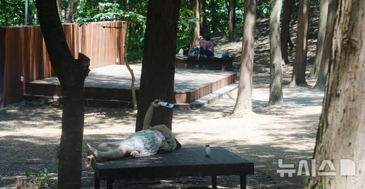 [전주=뉴시스] 김얼 기자 = 초여름 날씨가 이어지고 있는 11일 전북 전주시 건지산을 찾은 시민들이 나무 그늘아래에서 휴식을 취하고 있다. 2025.06.11. [email protected]