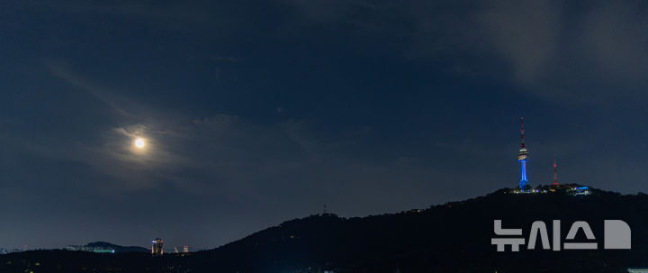 [서울=뉴시스] 황준선 기자 = 11일 밤 서울 중구에서 바라본 하늘에 보름달이 떠 있다.