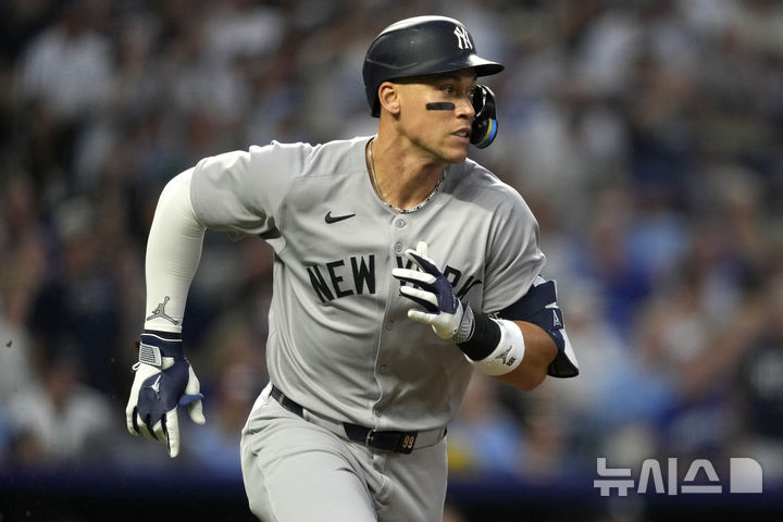 [캔자스시티=AP/뉴시스] 뉴욕 양키스의 애런 저지가 11일(현지 시간) 미 미주리주 캔자스시티 코프먼 스타디움에서 열린 2025 메이저리그 캔자스시티 로열스와의 경기 7회 초 1점 홈런(시즌 25호)을 친 후 1루로 향하고 있다. 2025.06.12.