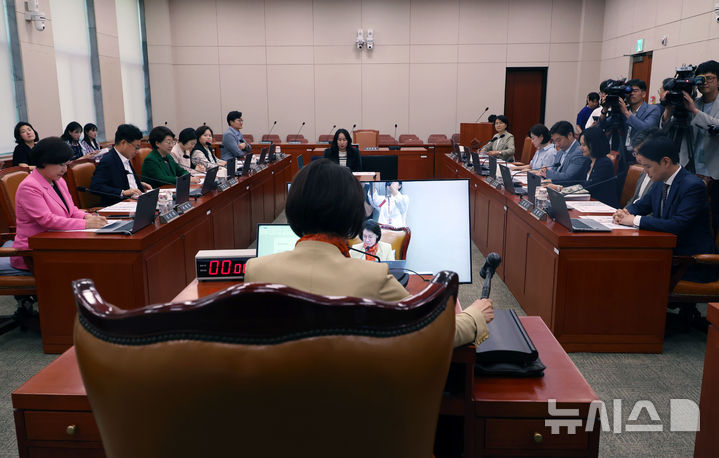 [서울=뉴시스] 고승민 기자 = 12일 서울 여의도 국회에서 열린 제426회 국회(임시회) 여성가족위원회 제1차 전체회의에서 이인선 위원장이 회의를 주재하고 있다. 2025.06.12. [email protected]