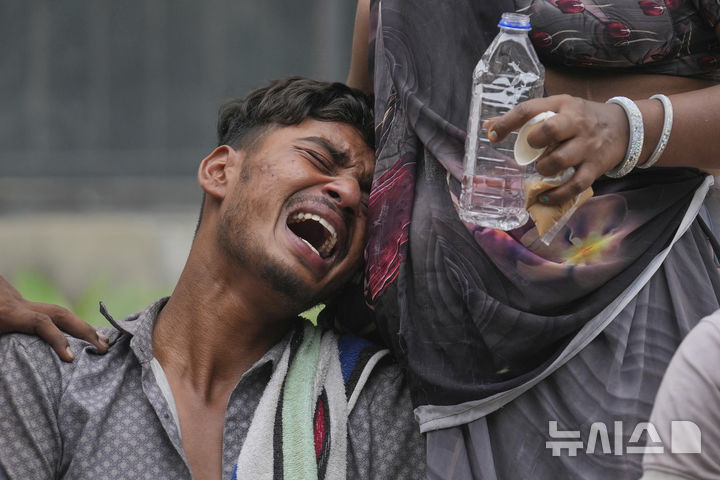 [아마다바드=AP/뉴시스] 13일(현지 시간) 인도 구자라트주 아마다바드에서 에어인디아 여객기의 주거 지역 추락으로 14세 동생을 잃은 한 남성이 병원 검시실 밖에서 오열하고 있다. 2025.06.13.
