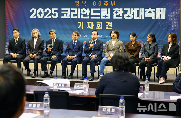 [서울=뉴시스] 박주성 기자 = 정우택 코리안드림 한강대축제 공동조직위원장이 13일 서울 중구 프레스센터에서 열린 '2025 코리안드림 한강대축제' 기자간담회에서 취재진의 질문에 답하고 있다. 2025.06.13. [email protected]