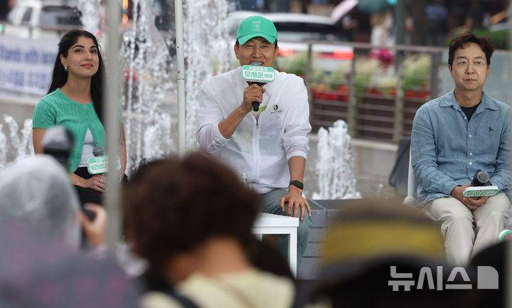 [서울=뉴시스] 추상철 기자 = 오세훈 서울시장이 13일 오후 서울 중구 청계광장에서 열린 '청계천 복원 20주년 2025 워터서울 토크콘서트'에서 인사말을 하고 있다. 2025.06.13. [email protected]