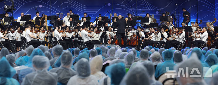 [서울=뉴시스] 추상철 기자 = 13일 오후 서울 영등포구 여의도 한강공원 물빛무대 앞 광장에서 한국경제인협회가 후원하는 '2025 서울시립교향악단 강변음악회'가 열리고 있다. 2025.06.13. [email protected]