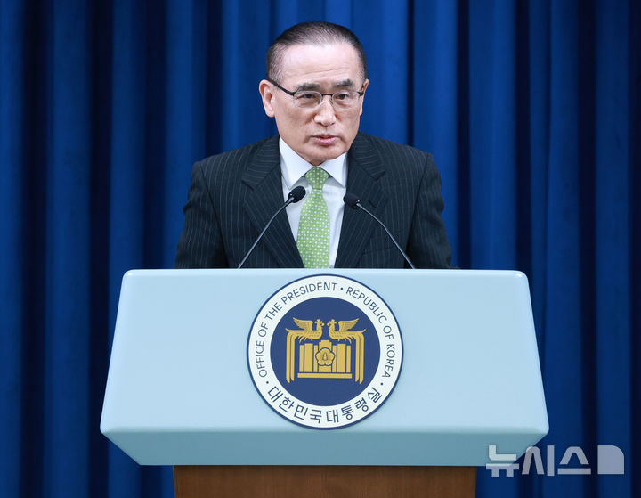 [서울=뉴시스] 고범준 기자 = 위성락 국가안보실장이 15일 서울 용산구 대통령실 브리핑룸에서 G7 정상 외교 관련 브리핑을 하고 있다. 2025.06.15. [email protected]