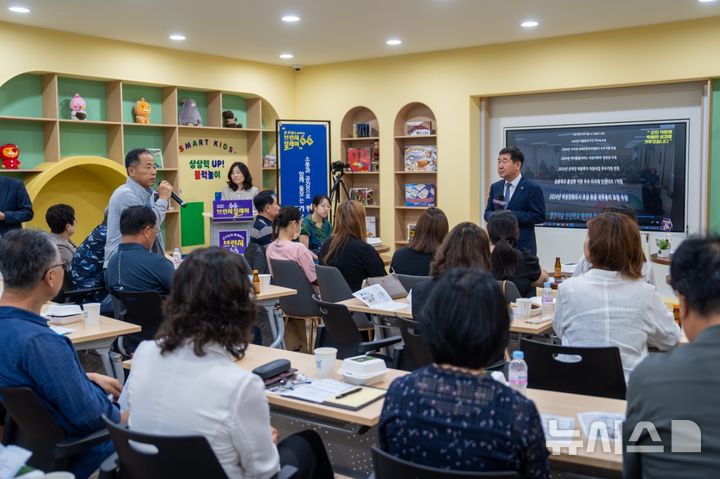 [증평=뉴시스] 서주영 기자 = 16일 충북 증평군 돌봄나눔플러스센터에서 열린 '군민과 함께하는 브런치 톡(Talk)톡(Talk) 릴레이' 행사에서 이재영 군수가 주민들과 소통하고 있다. (사진= 증평군 제공) 2025.06.16. [email protected]