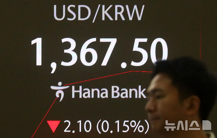 [서울=뉴시스] 김혜진 기자 = 원·달러 환율이 전 거래일 주간거래 종가(1369.6원)보다 1.6원 내린 1368.0원에 개장한 16일 오전 서울 중구 하나은행 딜링룸 전광판에 지수가 표시되고 있다.