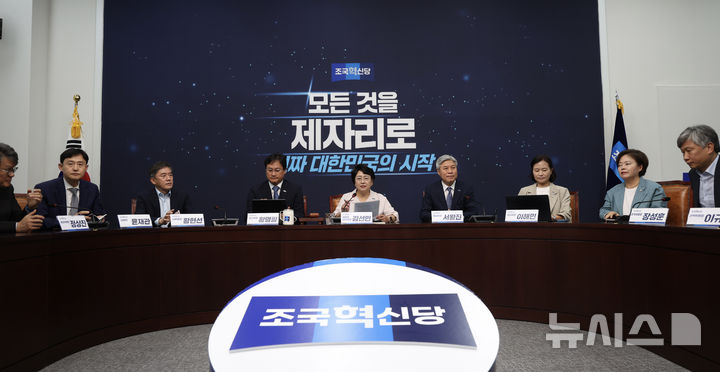 [서울=뉴시스] 김명년 기자 = 김선민 조국혁신당 당대표 권한대행이 16일 오전 서울 여의도 국회에서 열린 최고위원회의에서 발언하고 있다. 2025.06.16. [email protected]