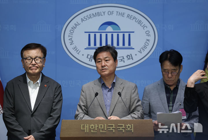 [서울=뉴시스] 김명년 기자 = 김영배 더불어민주당 의원이 16일 오전 서울 여의도 국회 소통관에서 열린 '삼청교육대 피해자 명예회복 및 보상에 관한 법률 개정 요구 기자회견'에서 발언하고 있다. 2025.06.16. [email protected]